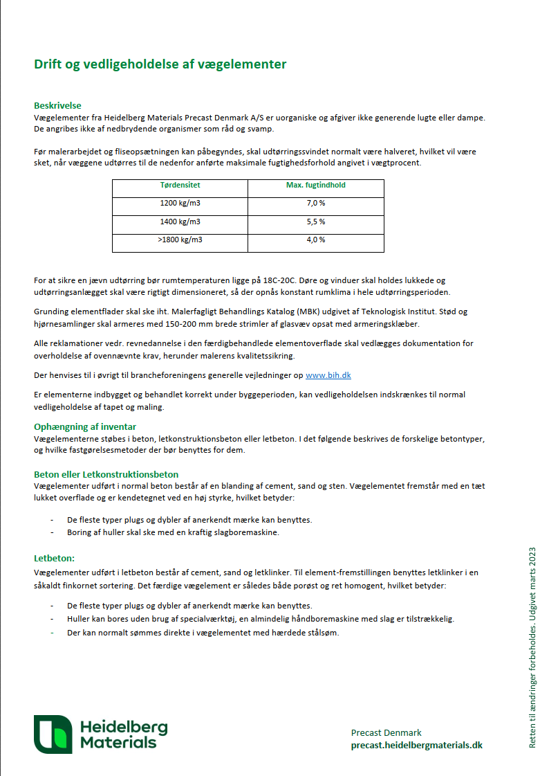 Hos Heidelberg Materials fremstiller vi bærende- og ikke bærende vægelementer i beton i højeste kvalitet. Ligegyldigt hvilket byggeri I står overfor, kan vi levere specialtilpassede vægge til Jer.