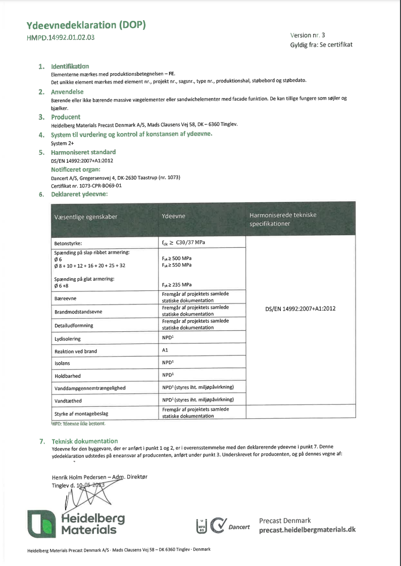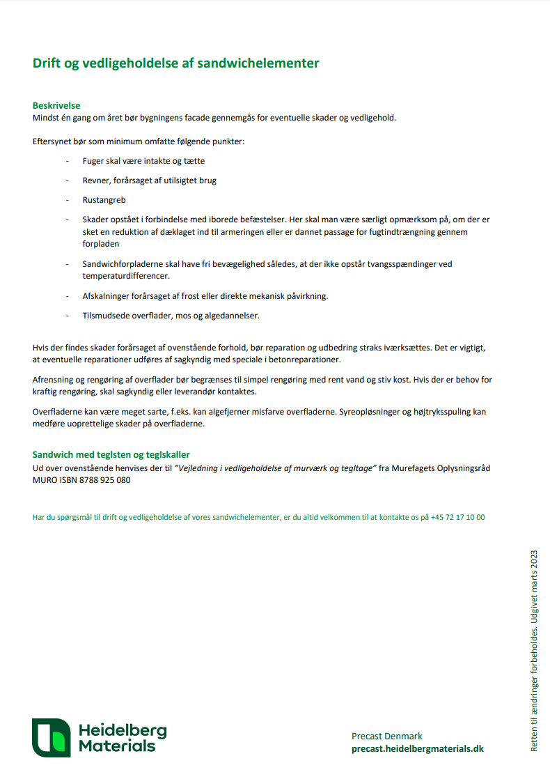 Den på limet eller indstøbte tegl følger på det enkelte element tolerancer iht. Dansk Byggeri’s ”Hvor går grænsen – Murværk – Skalmur”. Murstensbeklædningen er ikke omfattet af CE-mærkningen, men er udført håndværksmæssigt korrekt.