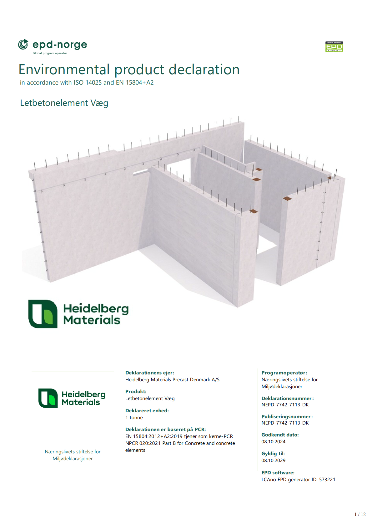 Produktspecifikke EPD'er for Heidelberg Materials Precast Denmark